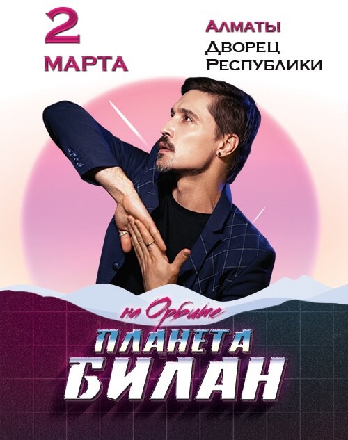 2 марта Дима Билан встретится с поклонниками на орбите «Планеты Билан» во Дворце республики. В 19-00 Зрители увидят на сцене огромные экраны, а главное в живую услышат новые песни и лучшие хиты Димы Билана.