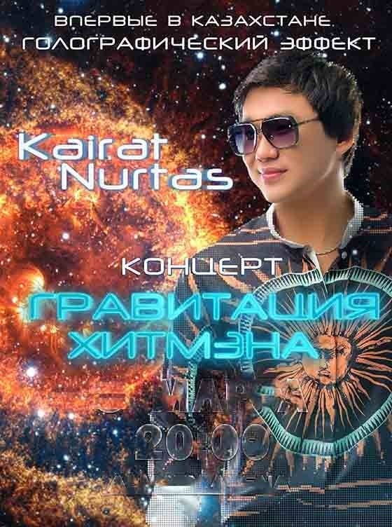 Впервые в Казахстане! Супер шоу только для Вас! Представляем концерт Кайрата Нуртаса в новом направлении и с голографическим эффектом – “Гравитация Хитмена.” Это неповторимые песни и результат 10 летнего опыта.