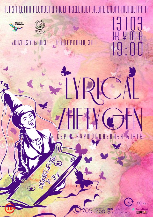 На концерте «LYRICAL ZHETYGEN» мы поделимся с вами волшебным звучанием древнего инструмента. Это чарующие, магические, степные звуки ЖЕТІГЕНА.