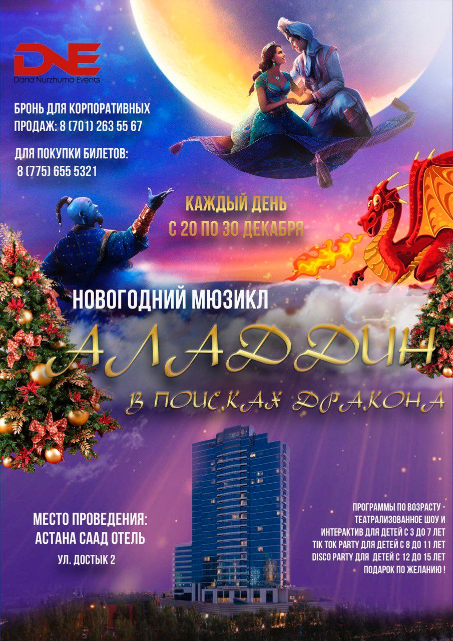 Новогодний утренник в Астане: детский мюзикл «Аладдин в поисках дракона» 30 декабря