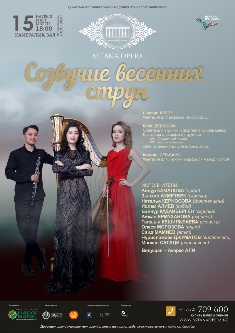 15 марта 2020 года артисты оркестра представят концерт камерной музыки, в котором прозвучат произведения французских композиторов К.Дебюсси, К.Сен-Санса и немецкого скрипача, композитора, одного из первых представителей романтического стиля в музыке – Людвига Шпора. В программе редко исполняемые камерные произведения.