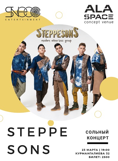 “STEPPE SONS” создадут образы и незабываемые картины прошлого и настоящего, вы прочувствуете настоящий дух кочевника и тонкий стиль джазового исполнения! Откройте новый музыкальный тренд в казахской народной музыке вместе с нами!