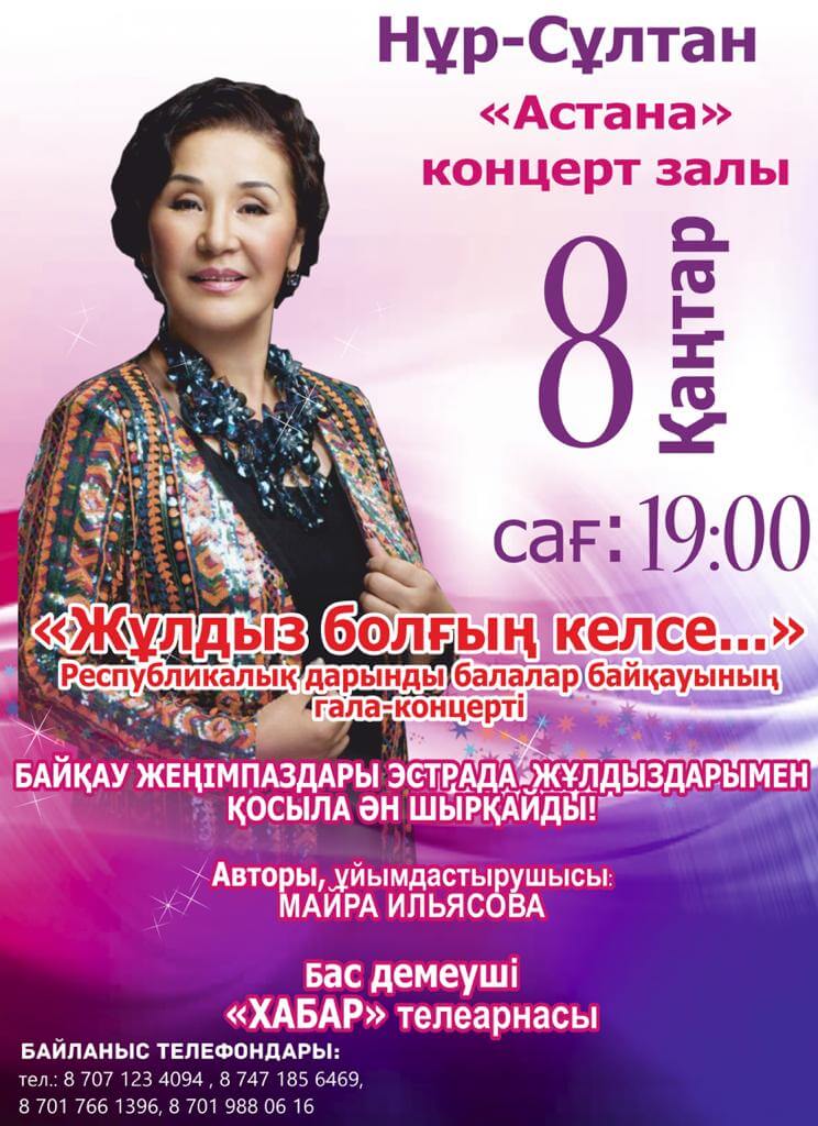 Сіздерді 8 қаңтар сағат 19:00-де «Астана» концерт залында өтетін Республикалық дарынды балаларға арналған «Жұлдыз болғың келсе…» байқауының гала-концертіне шақырамыз!